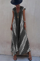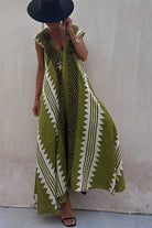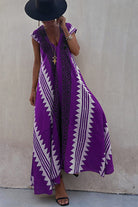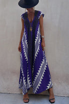 Step into elegance and ease with this flowy maxi dress featuring eye-catching ethnic prints, a deep V-neckline, and a relaxed, flowing cut. The bold vertical design elongates the figure while offering freedom of movement and effortless charm. Perfect for holidays, beach getaways, or warm-weather afternoons, this dress brings vibrant style to any casual setting.