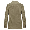 This lightweight blazer is available in Khaki, Black, and Army Green, across sizes S, M, L, XL, 2XL, and 3XL.