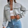 - Stylish Design: Features a modern cropped fit with a zip-up front.