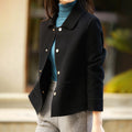 Discover the perfect blend of utility and style with our Women's Button-Up Jacket. This essential Versatile Outerwear piece is designed with a contemporary Short Coat length and a flattering, slightly Relaxed Silhouette. It features a sharp Shirt Collar and a simple Button-Up front, giving it a smart, functional aesthetic. The addition of oversized Front Pockets provides a utilitarian detail, making this the ultimate item for effortless layering and modern styling during any transitional season. Its crisp design makes it the ideal Transitional Jacket for elevating everyday outfits.