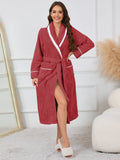 Indulge in a new level of timeless elegance with our exceptionally soft Women's Dressing Gown. This full-length robe is a perfect blend of modern design and everyday functionality, featuring a streamlined silhouette accented by a Contrast Trim along the neckline, cuffs, and belt. The secure, self-tie belt allows for a comfortable, customized fit, while the two front patch pockets provide convenient storage. This Full-Length Dressing Gown is an essential wardrobe item for all seasons, providing warmth and effortless style for mornings and evenings at home.