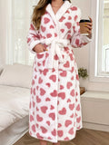 Curate your moments of rest with our exceptionally soft Women's Dressing Gown. This full-length robe, featuring a classic shawl collar and a playful Heart Print, is designed for both charm and comfort. The secure, self-tie belt allows for a comfortable, customizable fit, while the side pockets provide convenient storage for small essentials. With its plush fabric and delightful design, this Full-Length Dressing Gown is a perfect addition to your daily routine, providing warmth and a touch of whimsy for mornings and evenings at home.