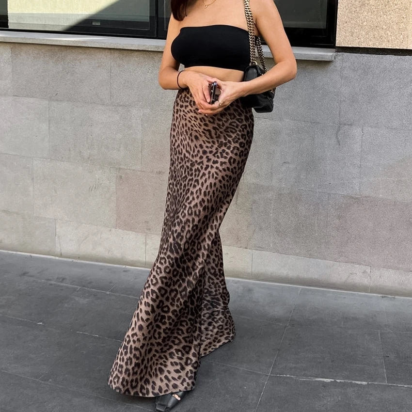 Women's Leopard Print Skirt - High Waist Chic Versatile