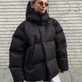 Women's Oversized Puffer Jacket - Winter High Neck Hood Design